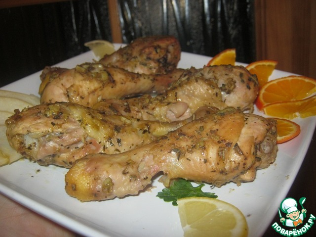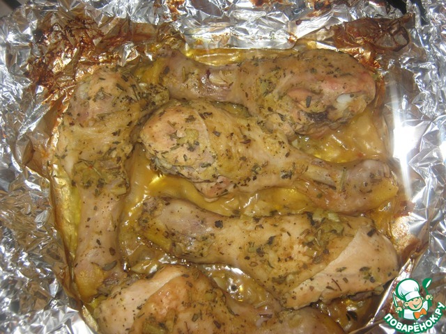 | Этот интересный и простой рецепт голени в фольге в духовке, благодаря добавлению рома ( или по желанию-вина )и трав, превращает слегка суховатую курицу в нежную и сочную. Ножки, приготовленные таким способом, буквально тают во рту. |