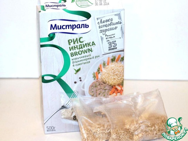 Отвариваем рис в пакетиках по инструкции.