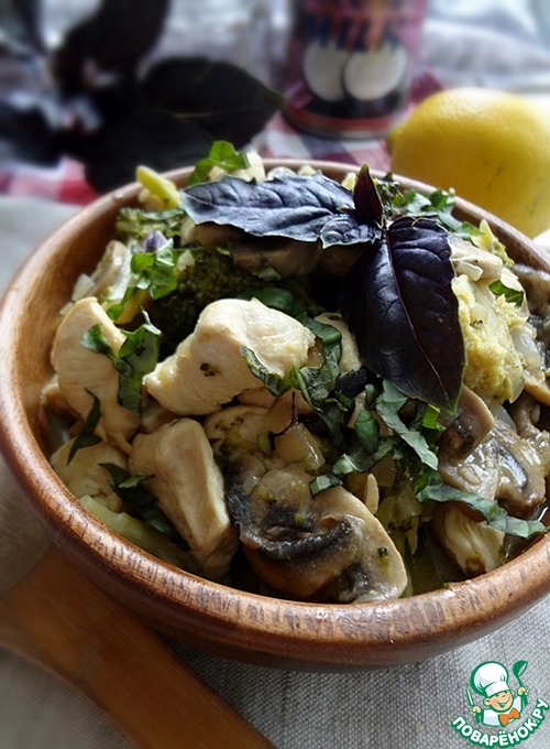 | Это блюдо приготовлено по мотивам тайской кухни способом быстрой обжарки. Несложное в приготовлении, оно богато вкусовыми оттенками и ароматами. |