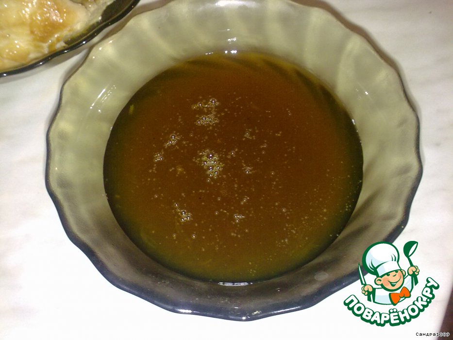 Соус. За это время можете сделать соус. Выдавите сок из лимона и апельсинов. Перелейте их в кастрюльку или ковшик. Смешайте их с сахаром и специями (корица и мускатных орех) и поставьте кипятиться.