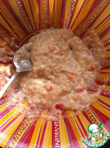 Куриное филе, вместе с луком, молоком, яйцом измельчить в блендере. Посолить, поперчить, добавить овощи и перемешать.
