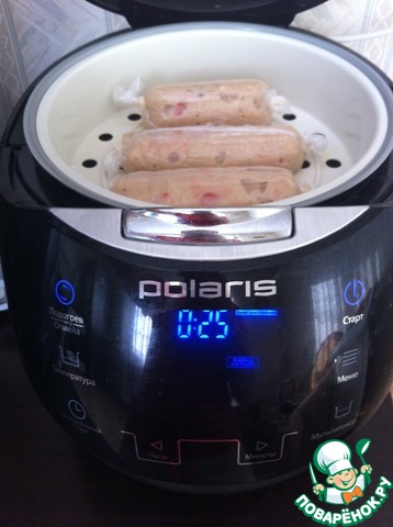 Теперь можно закидывать сосиски в кипящую воду (можно и пожарить) и варить минут 15-20. Я варила сосиски на пару! Приятного аппетита!!!