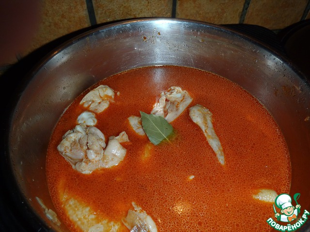 Cоус поварили и вернули в него курочку, довели до кипения и выключили.