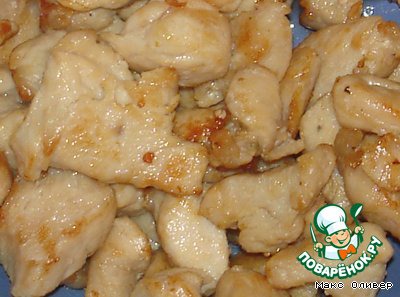 Обжариваем нарезанное на небольшие кусочки филе.