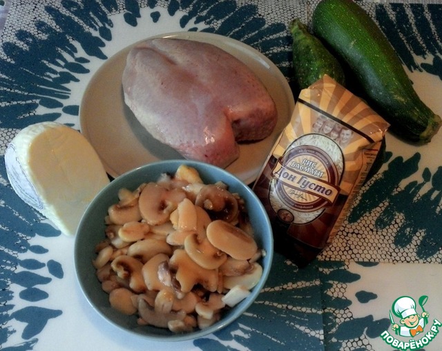 Пока жарились грибы и курица, я порезала кубиками цуккини