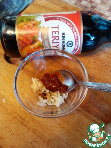 Оставшийся соус Терияки, аджику и измельченный чеснок смешать