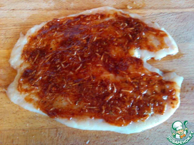 Смазать с двух сторон соусом "Терияки" от Киккоман (уйдёт примерно 1/2 ст. л)