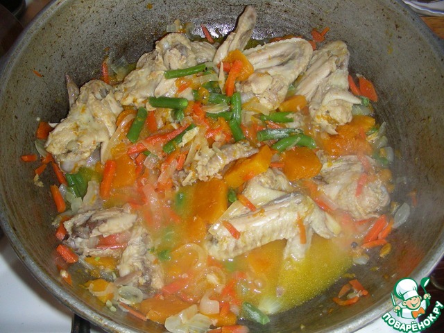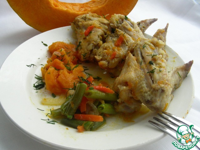 | Тыква - замечательный овощ, из которого можно готовить всю зиму полезные и вкусные блюда. Попробуйте приготовить сладкое овощное рагу с нежными куриными крылышками. Быстро и просто. |