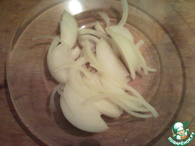 Выдержали выбранное время для маринования и начинаем готовить. В хорошо нагретую, смазанную сковороду выкладываем СВИНИНУ, режем лук. Минут через 5-10 в куриное филе добавляем соду - перемешиваем, лимонный сок - перемешиваем и крахмал - перемешиваем и оставляем на 15 минут. Рецепт "Свиной карбонат из курицы"