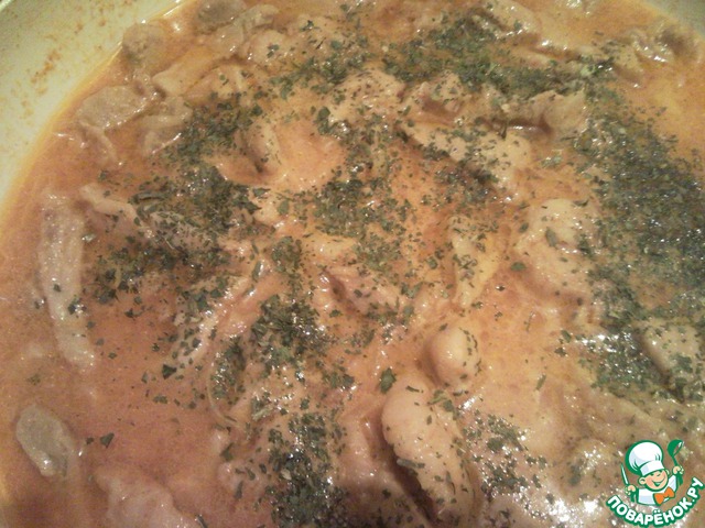 Тушим на средней температуре, за несколько минут до готовности я добавила сухую зелень, но лучше, конечно, свежую. Я не пишу точное время готовки, т. к. на мою плиту лучше не ориентироваться.