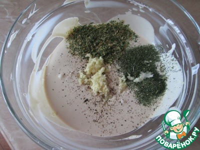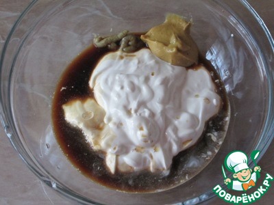 Смешиваем в миске сметану, соевый соус, горчицу и васаби