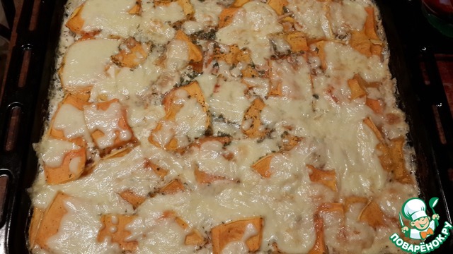 Сверху выкладываем тыкву и поливаем оставшимся соусом.
