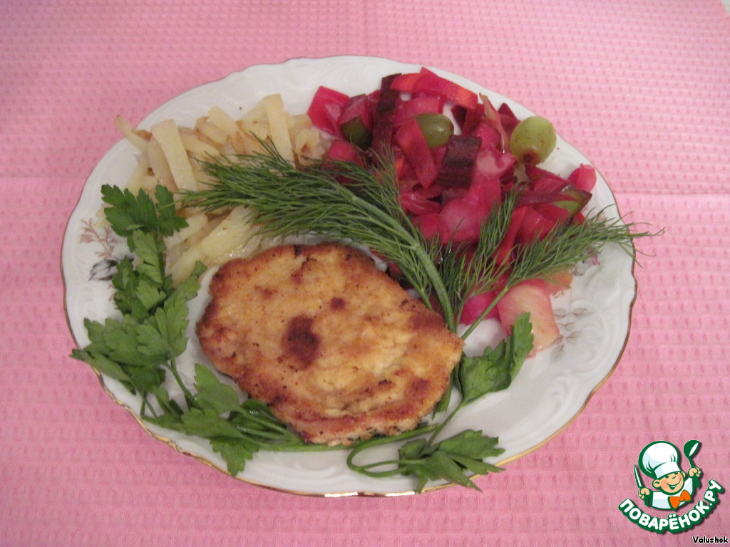 Мясо подавать с гарниром, можно отбивную кушать холодной, тоже вкусно.