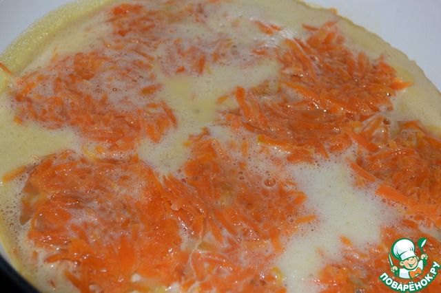 Поверх курицы выложить морковь. Готовить курицу 15-20 минут на подсолнечном масле.