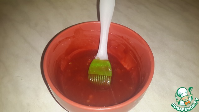 Смешать мед, мелко порезанный чеснок и томатную пасту для глазури.