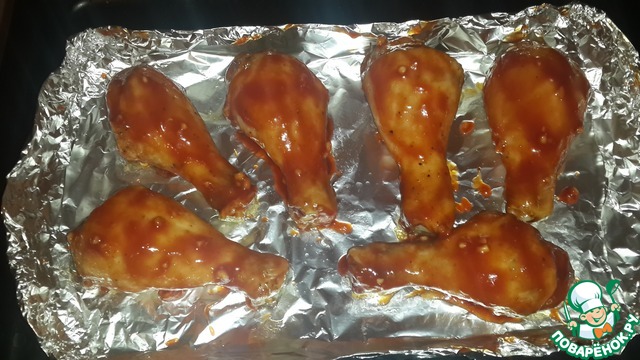 Достаем ножки, смазываем глазурью и отправляем обратно в духовку до образования золотистой корочки.