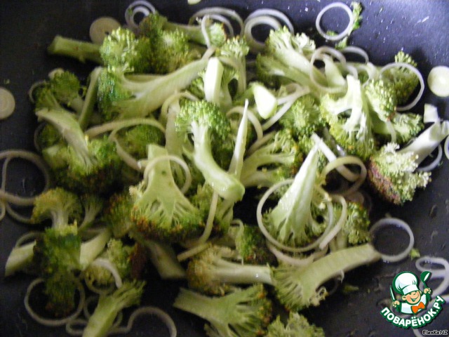 Брокколи разобрать на соцветия, лук порезать кольцами.