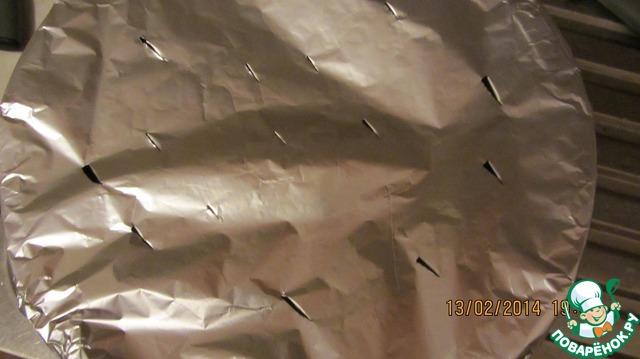 Достаем их, переворачиваем и выкладываем на них перцы маринованные. Закрываем фольгой и протыкаем фольгу ножом в нескольких местах. Снова в духовку до готовности, где-то 30-40 минут.