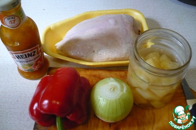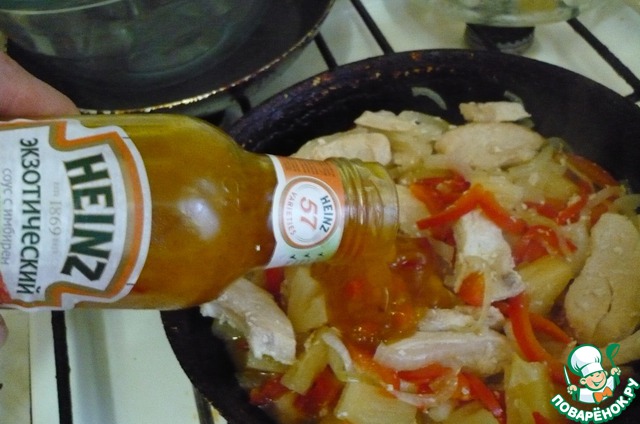 Теперь добавляем соус. Можно взять любой кисло-сладкий соус из экзотической серии, какой любите.