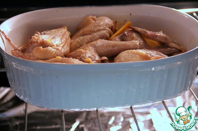 Затем вынимаем из духовки, переворачиваем курицу на другую сторону и отправляем обратно в духовку еще на 15 минут.
