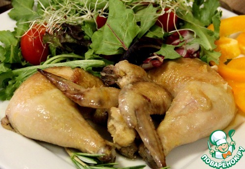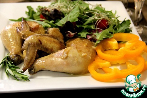 | Кажется ну вот что можно нового приготовить из курицы? Уже столько много рецептов, которые мы все знаем и пробовали. И вот мне попался на глаза новый рецепт, который поразил меня простотой и обилием вкуса и аромата. Курочка получилась очень нежной, ароматной, просто тает во рту!!! Под это настроение я устроила мужу романтический ужин и мы наслаждались нашим любимым вином, вкусным ужином и общением друг с другом!))) Угощайтесь и вы!!! |