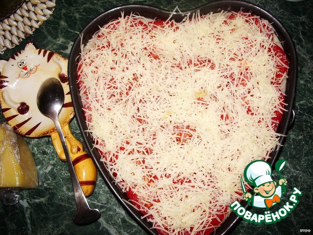 Посыпаем тертым сыром и ставим в разогретую до 200 градусов духовку на 20 минут.