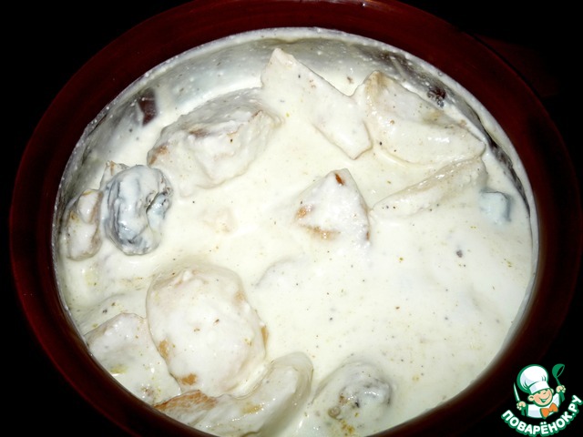 Получается вкусно и необычно: сметана приобретает грушевый привкус, курочка становится нежной и ароматной и даже вкус чернослива меняется совешенно неожиданно.