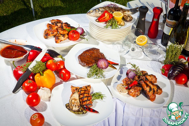 | Барбекю (англ. barbecue, фр. barbecue, сокр. BBQ) — способ приготовления продуктов питания (чаще всего мяса) на жаре тлеющих углей (изначально), горящего газа или электронагревателя; а также название самого блюда; оборудования, используемого для этого; досуговое мероприятие с приготовлением продуктов питания таким способом; особый соус, применяемый при приготовлении мяса таким способом. Термин традиционно распространен в США и близок к традиционному для России шашлыку. В узком, технологическом смысле термин «барбекю» обозначает метод приготовления продукта способом копчения в стороне от углей, при относительно невысокой температуре (100—120 °С). Это значение сохраняется в южных штатах США, для которых такой способ приготовления мяса традиционен с XVIII в. |