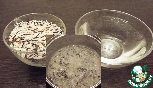 Варим рис (у меня это смесь дикого риса и белого). На 1 ст. риса 2,5 стакана воды и немного соли. Рис вариться 15-20 минут.
