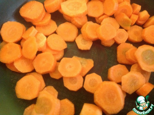 Морковь режем кружочками и ставим обжаривать в сухую сковороду без масла