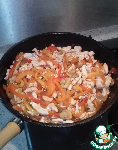 Острая куриная грудка с овощами в воке