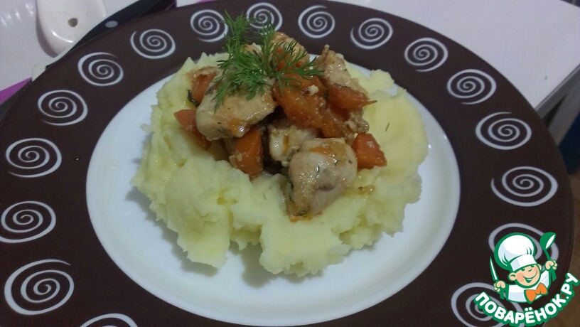 Мужу я подала эту вкуснятину с пюре, чтоб он наелся и мне больше осталось)))