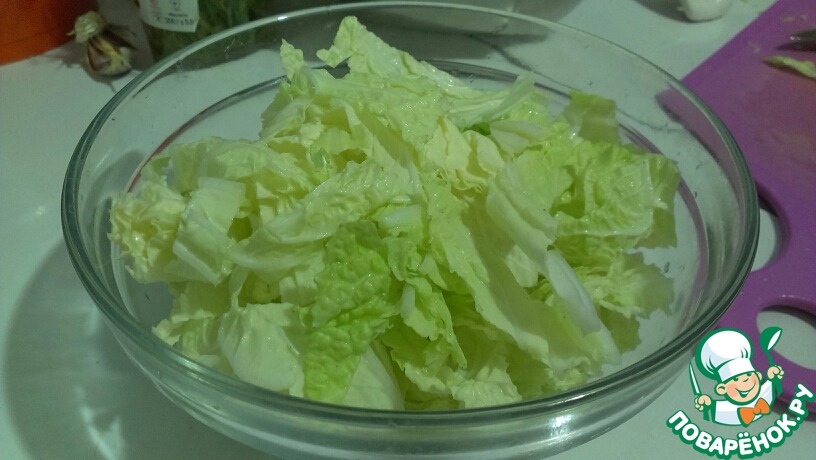 Нарезаем пекинскую капусту. Я люблю крупно.