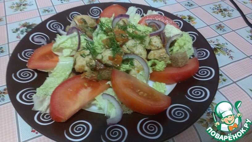 Ну и заправка-это уже как Вам по душе. Мне нравится оливковое масло+лимон. сок+немного соевого соуса. Добавляем туда курочку с тыквой и наслаждаемся вкусным, ароматным, теплым салатиком.