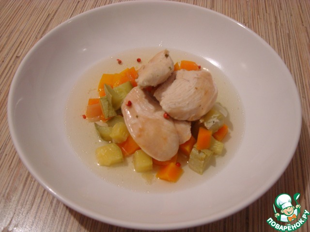 | Куриная грудка, припущенная с молочными кабачками и сладкой морковью. Желание создать блюдо, отвечающее всем постулатам вкусной и здоровой еды, привело к появлению данного варианта приготовления курицы с овощами. Очень просто - куриная грудка и свежие овощи - самые актуальные продукты для тех, кто заботится о своем здоровье и здоровье своих родных и близких. Блюдо может стать регулярным в рационе тех, кто занимается спортом и придерживается правил активного образа жизни. |