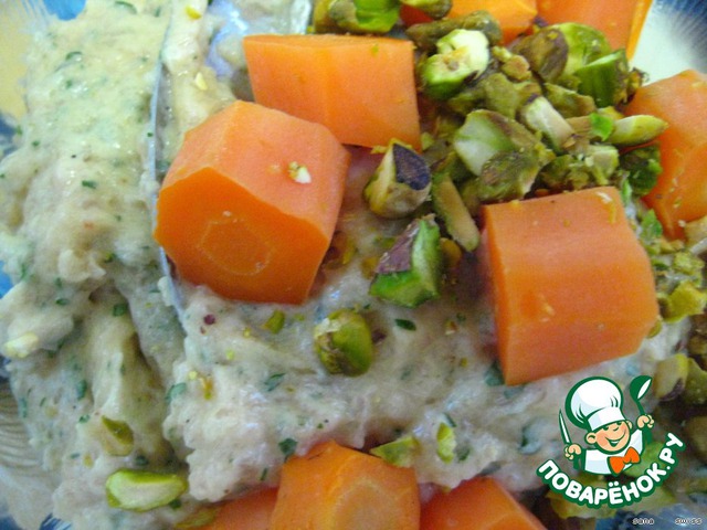 Добавим в №2 нарезанную кусочками морковь и фисташки и снова перемешаем.