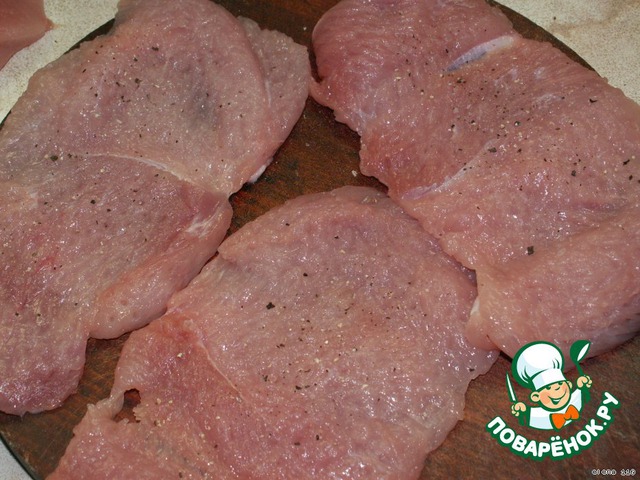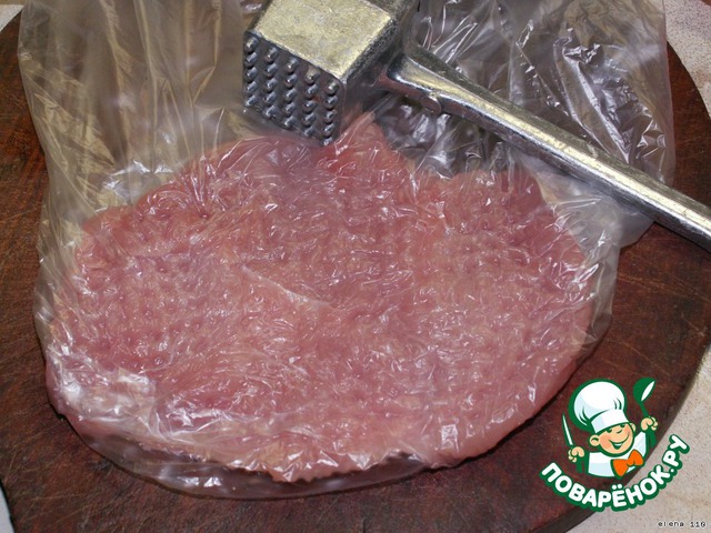 Филе помыть , обсушить, порезать стейками, положить в полиэтиленовый пакетик и отбить молоточком с двух сторон.