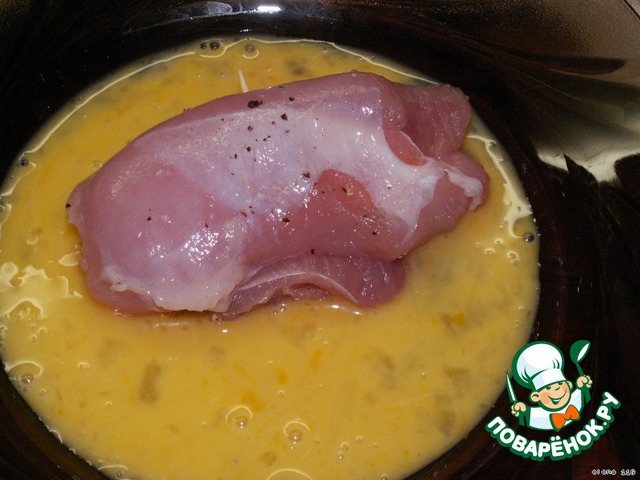 Обвалять сначала во взбитом яйце.