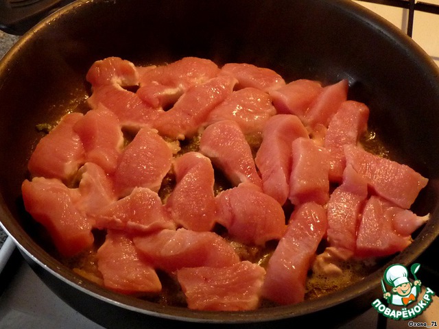 Индейку нарезать на кусочки ( как на гуляш ). Сало на мелкие кусочки.