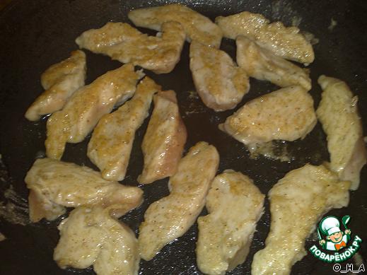 На разогретую сковороду с маслом выкладываем мясо. По кусочку, чтобы не слиплось.