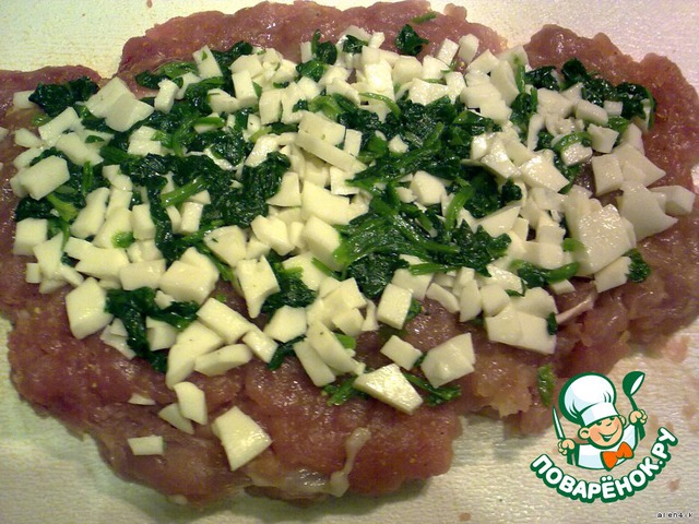 На пласт мяса выложить начинку