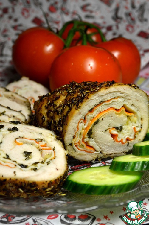 | "Арома", потому что очень ароматный, нежный, сочный рулет из филе индейки с прекрасно дополняющей его крабовой прослойкой, которая не только очень подходит для белого мяса, но и придает блюду определенный шарм. Набор специй подойдет для любого мяса, если Вы используете духовой шкаф для запекания. Кроме того, рулет вполне подойдет для тех, кто следит за фигурой и любит не только полезно, но и вкусно отужинать. Он так же хорош в остывшем виде, нарезанный тонкими слайсами, украсит праздничный стол. |