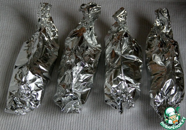 Сделать порционные конвертики из двойного слоя фольги. Подвернуть немного края.