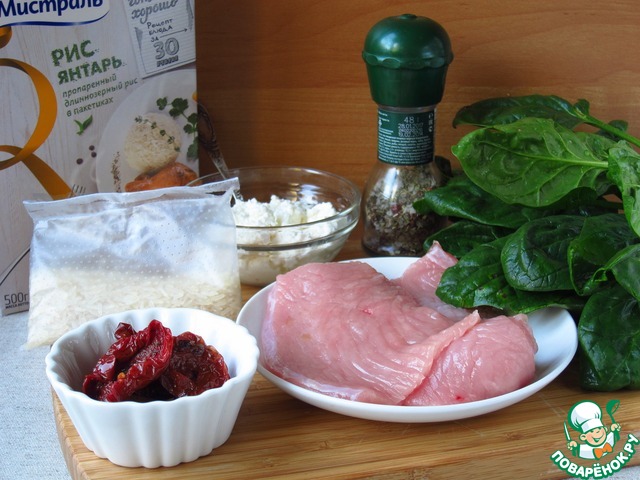Рулеты из индейки с сыром, вялеными томатами и шпинатом