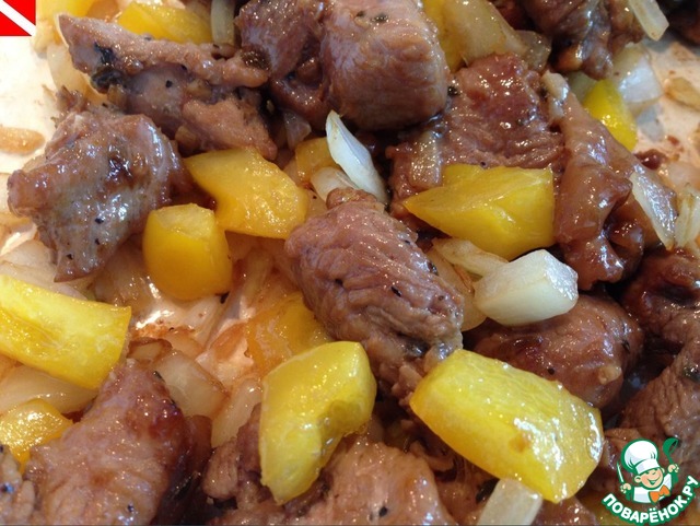 Возвращаем мясо на сковороду, хорошо перемешиваем
