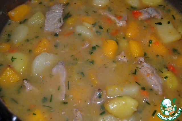 Картошка тушеная с индейкой и тыквой " Дары Осени"