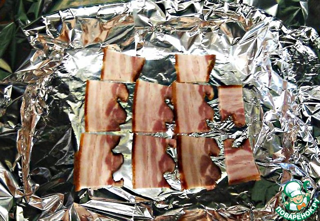 средне-тонко порезанную свинную грудинку, чтобы птичка не пригорела и не сохла.