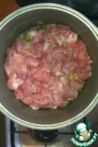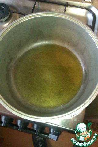 В жаровню налить оливкового масла чтоб скрыло дно. Поставить на сильный огонь.