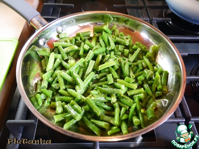Фасоль слегка посолить и обжарить на небольшом количестве растительного масла.
