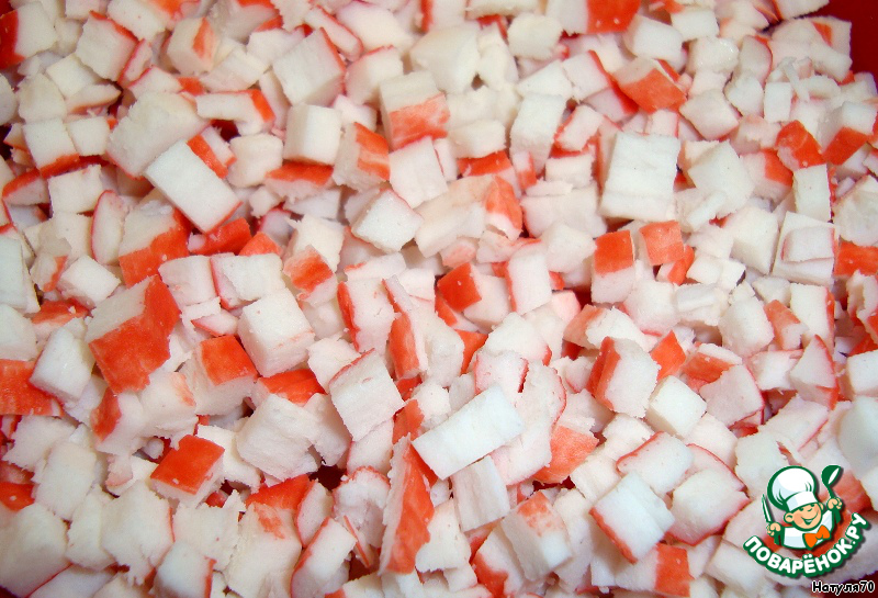 [i]Лучше, конечно, использовать настоящее крабовое мясо. Но в этот раз я не нашла крабового мяса, решила использовать палочки. Тоже неплохо, скажу я вам :-) ) [/i]